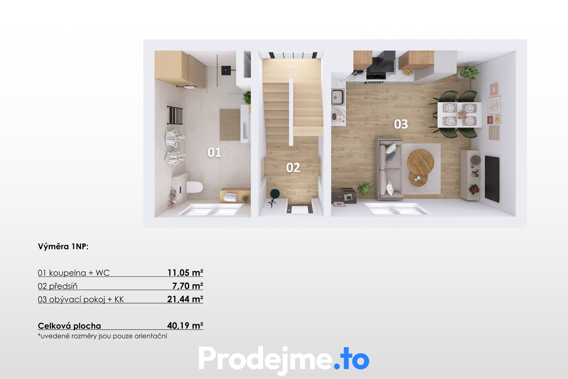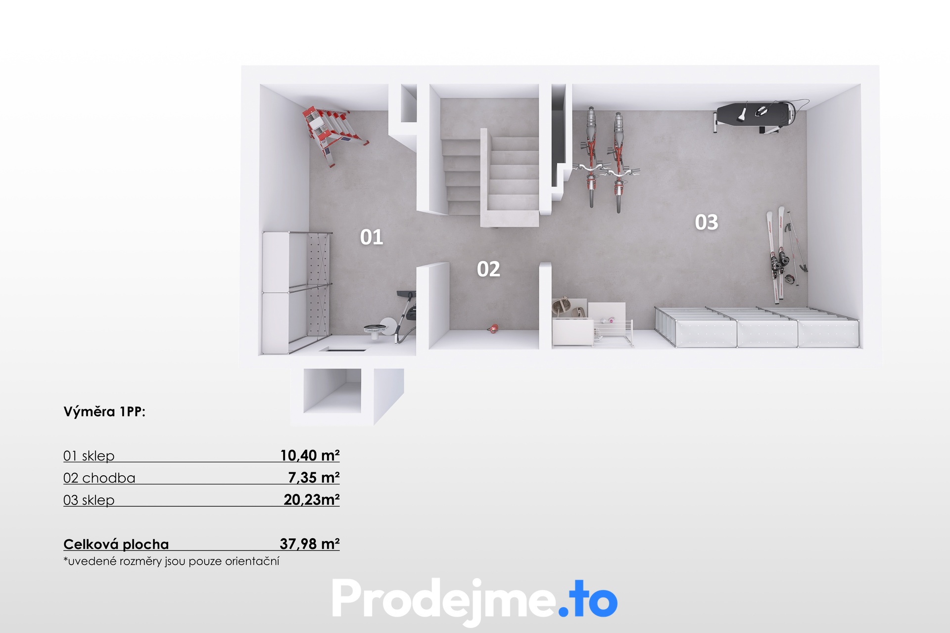 Přízemí tak nabídne velký obývací pokoj s kuchyňským koutem a místnost vhodnou pro koupelnu. Prostorné patro je ideální pro dětský pokoj a ložnici, případně další koupelnu a samostatné WC. Své nezbytnosti uložíte ve sklepě o 2 místnostech, z nichž jedna může posloužit i k trávení volného času. Záleží jen na vás, jestli si zde zařídíte dílnu, posilovnu nebo budete prostory využívat jako sklad.