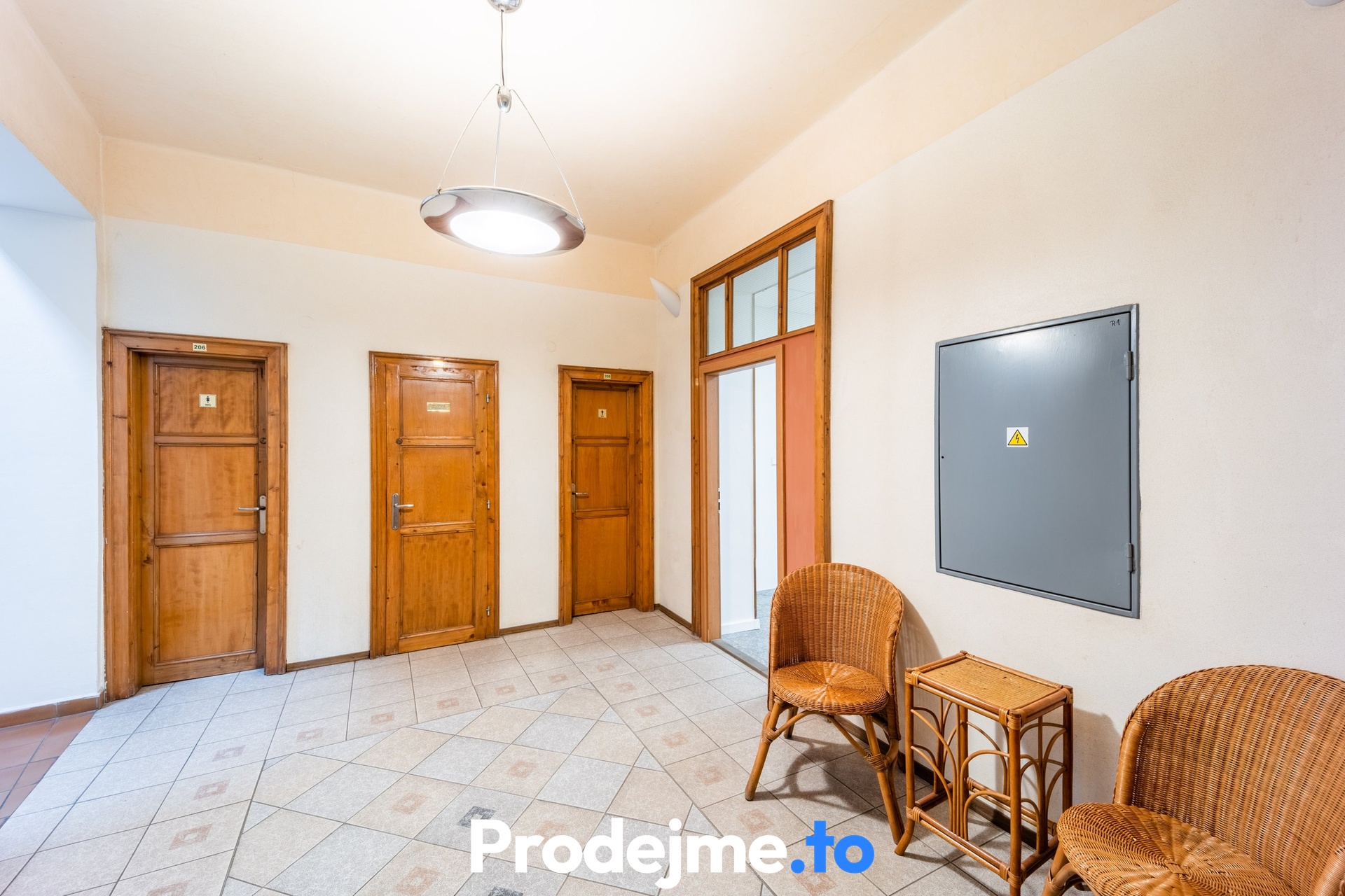 Při vstupu vás uvítá světlá předsíň, která dále navazuje na dvě prostorné místnosti s výhledem do ulice a do historického centra města. První z nich je vybavena kuchyňským koutem. Pracovny jsou mezi sebou propojeny dveřmi. Samozřejmostí je připojení na internet. Toalety se nachází na chodbě.