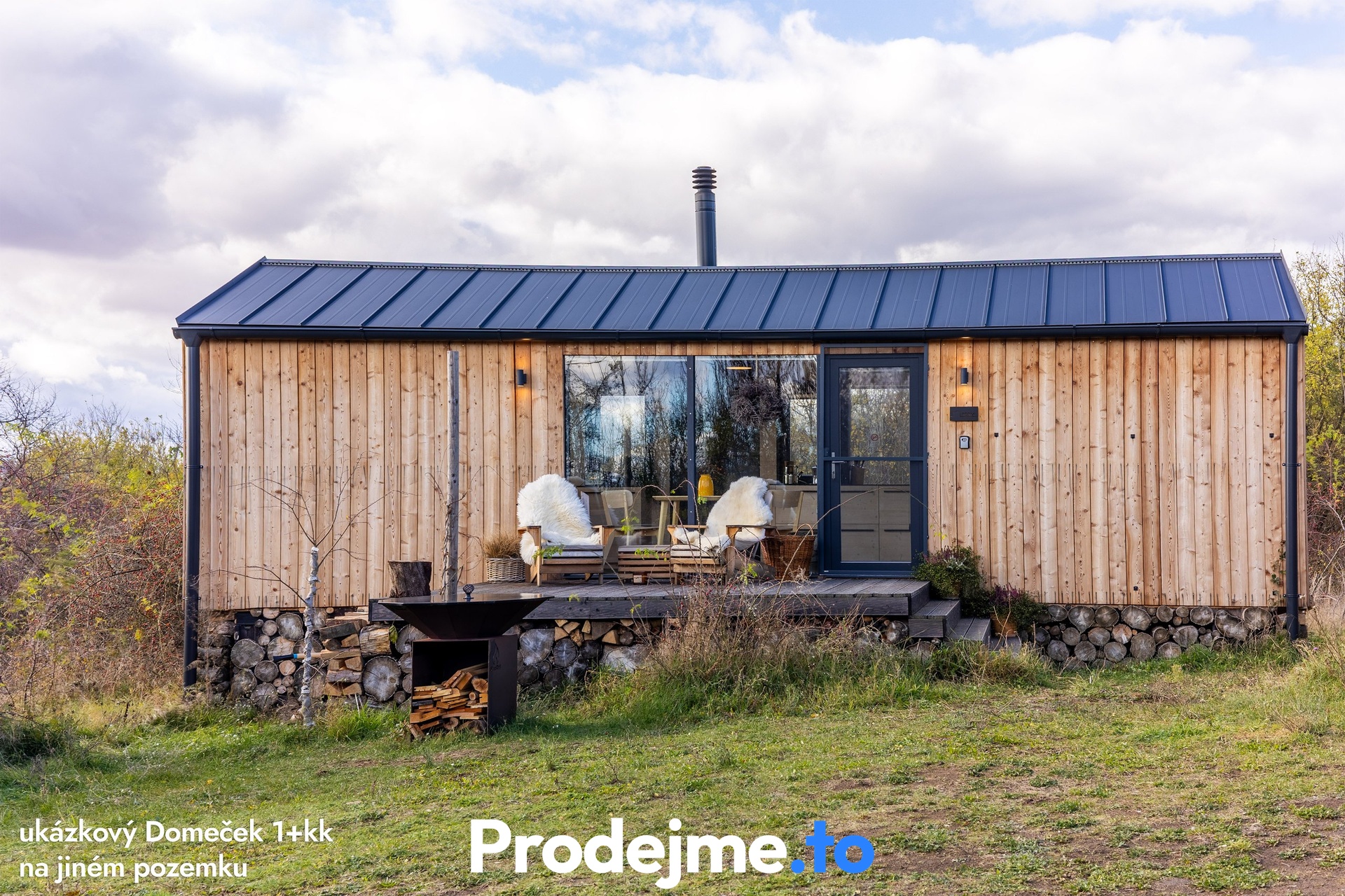 Na ploše bezmála 27 m² najdete vše, co potřebujete pro pohodlný život i pobyt, který bude pro vaše hosty skutečným zážitkem. Přes prostornou terasu a velké francouzské okno vstoupíte přímo do obývací části s plně vybavenou kuchyní – nechybí lednice, indukční deska ani dostatek úložných prostor. Teplo a nezapomenutelnou atmosféru umocňují krbová kamna. Ložnice s manželskou postelí a panoramatickým oknem nabízí výhled do přírody – ráno vás místo budíku probudí východ slunce a večer můžete usínat při pohledu na hvězdy. Koupelna v druhé části domečku je vybavená vanou, umyvadlem, toaletou a automatickým ventilátorem, samozřejmostí je i vyhřívaná podlaha.