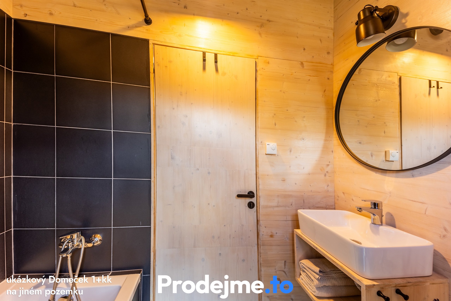 Domeček 2+kk voní dřevem, světlem a klidem. Ačkoliv se zdá na pohled malý, po vstupu dovnitř vás příjemně překvapí velkolepým dojmem z prostoru. Ten je tvořený kombinací výjimečné prosvětlenosti a vybavení na míru s využitím každého centimetru.