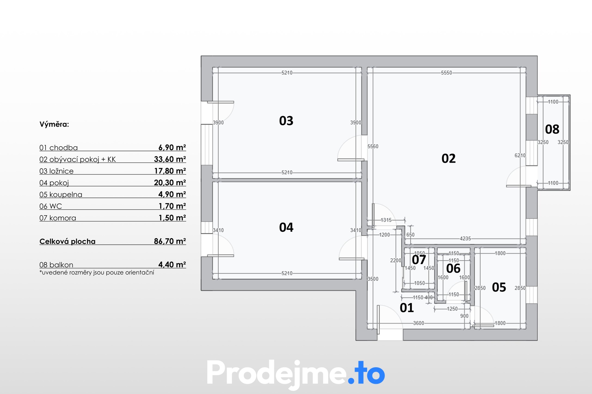 Byt se nachází ve třetím podlaží domu bez výtahu a má dispozici 3+kk o užitné ploše téměř 87 m2 + balkón 3,6 m2 + sklep 4,4 m2. Působí vzdušně a prostorně – velká okna v každé místnosti přivádějí spoustu denního světla a podporují příjemnou domácí atmosféru.