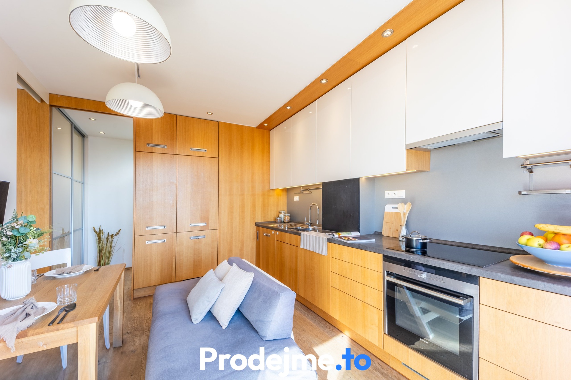 V roce 2013 byt prošel rekonstrukcí – dostal novou kuchyňskou linku, vestavěný nábytek i podlahy z dřevěných parket. Původní dispozice 2+kk (uvedeno v Prohlášení vlastníka) byla díky chytré vestavbě nábytkové stěny rozšířena na 2+1. Pokud by vám vyhovovala spíše otevřenější varianta, stačí stěnu jednoduše demontovat a získáte prostorný obývací pokoj s kuchyňským koutem.