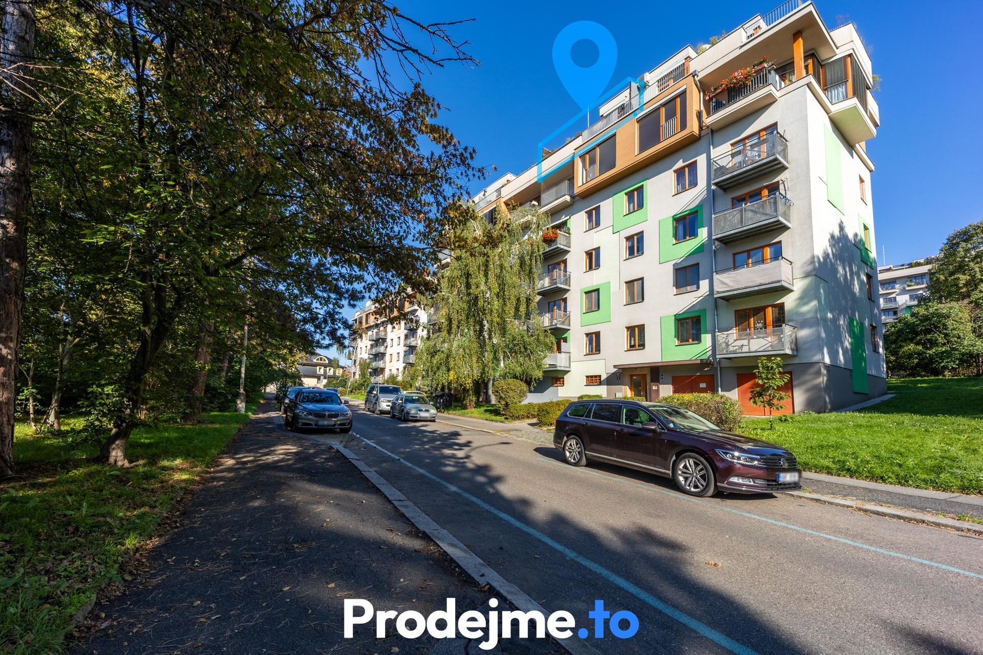 Dalším významným benefitem této nemovitosti je její atraktivní lokalita. Byt se nachází v klidné rezidenční zástavbě, která zároveň nabízí vynikající dopravní dostupnost – pouhých 240 metrů od zastávky autobusu a přibližně 8 minut chůze do ulice Hartigova, odkud jezdí tramvaje i autobusy směřující do centra města i k metru.