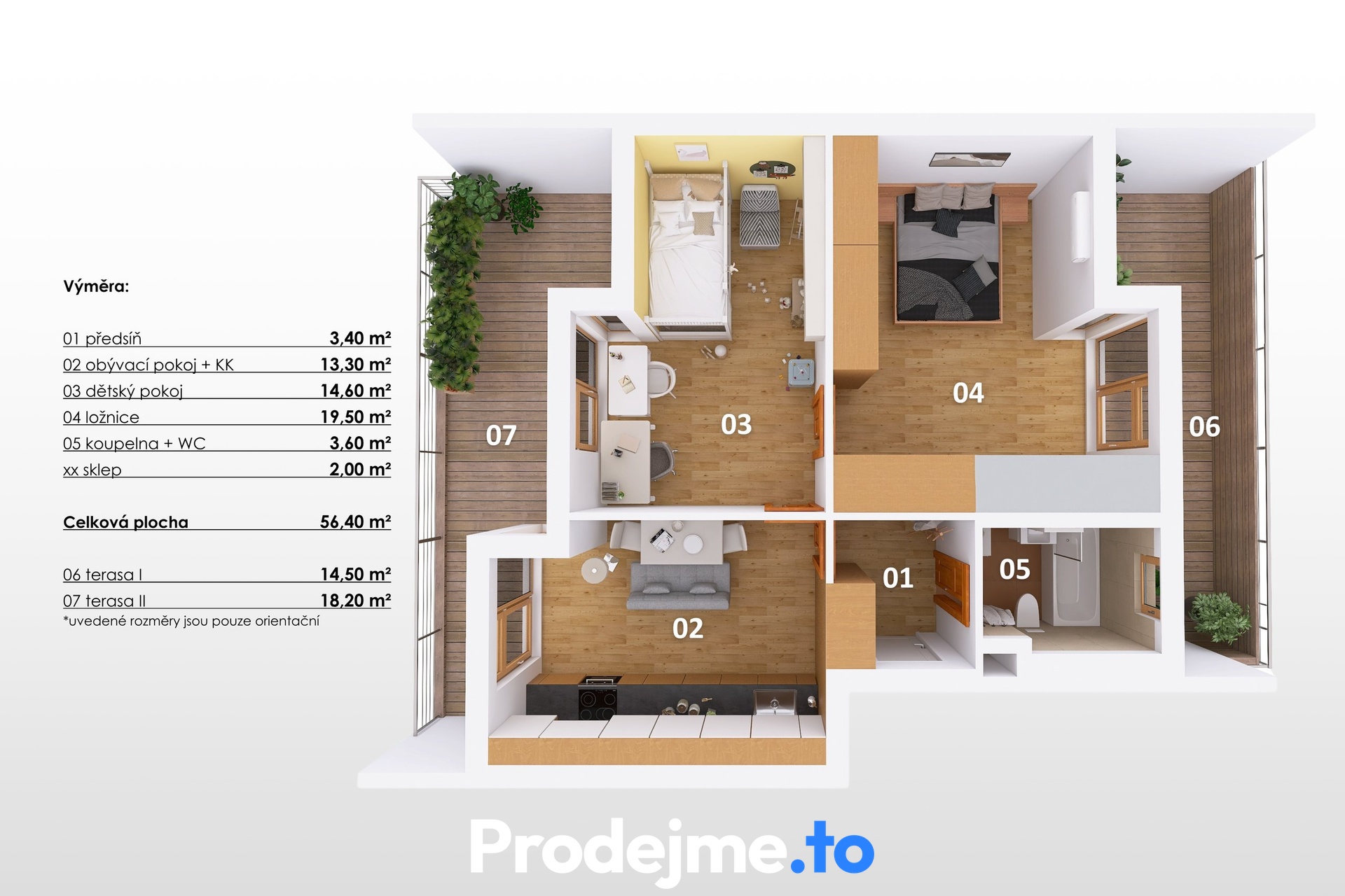 + 2 terasy o celkové výměře 32,7 m2