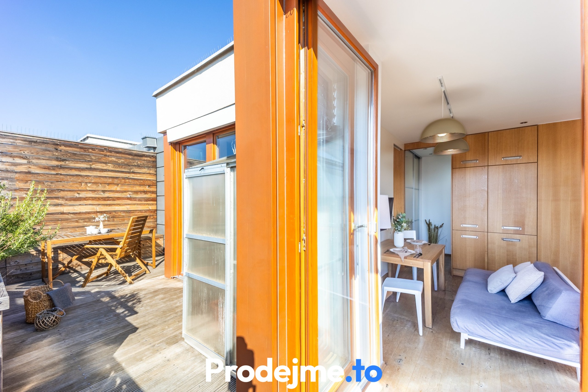 Tohle je důkaz, že i menší byt může nabídnout opravdu komfortní bydlení. Každý centimetr podlahové plochy je tady chytře využitý, takže se tu pohodlně zabydlí i rodina. Vítejte na Žižkově – v ulici Květinková na vás čeká střešní byt 2+kk s 54,4 m2 podlahové plochy a dvěma velkými terasami, které díky jejich umístění v posledním patře nabízejí příjemné soukromí.