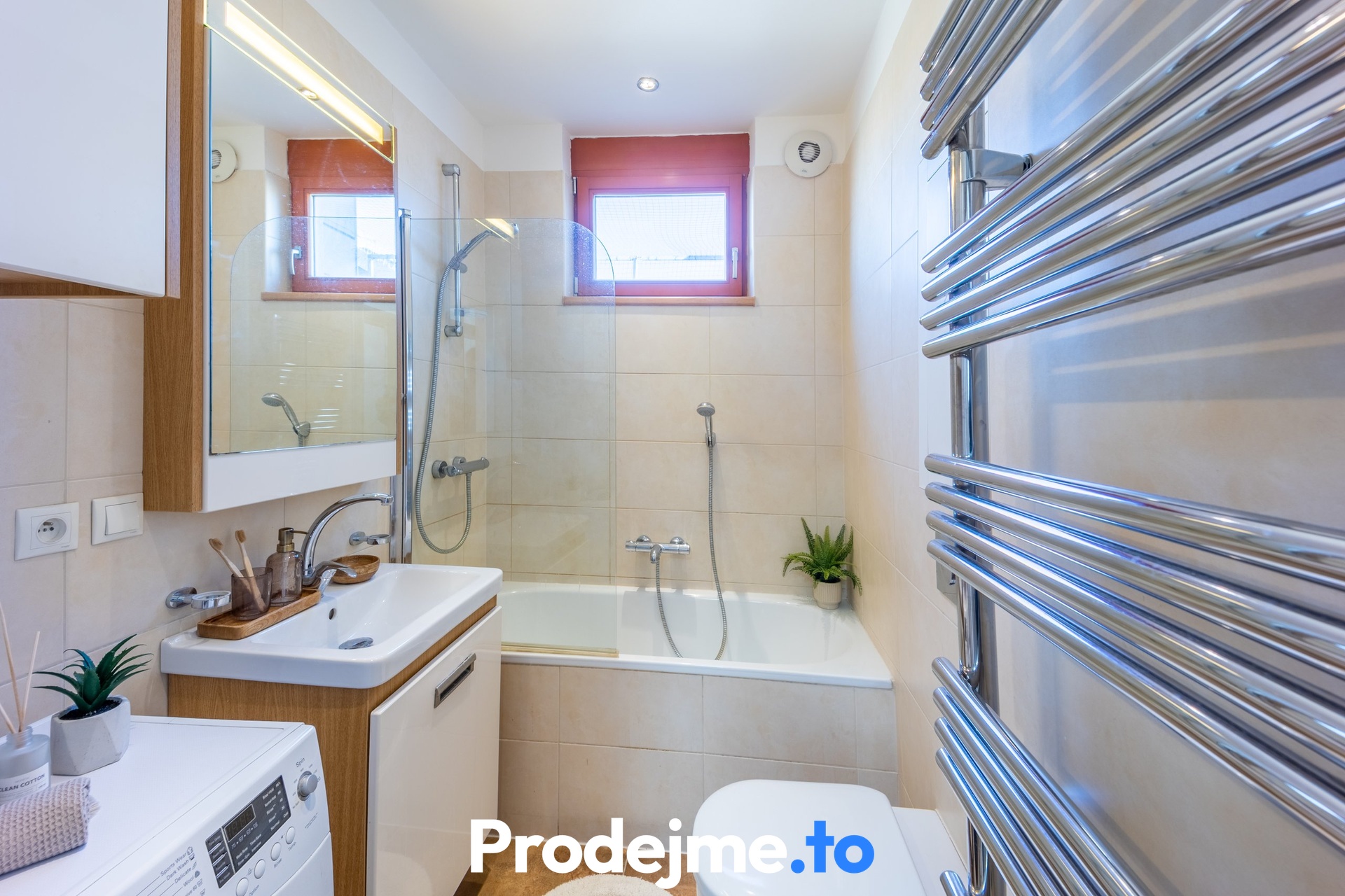 Komfortní teplo zajišťuje podlahové topení s napojením na centrální dálkové vytápění. V horkých letních dnech vám příjemné klima zajistí klimatizace. Součástí prodeje jsou vestavěné skříně, nábytek a vybavená kuchyně – elektrická i parní trouba, indukční deska, lednice s mrazákem, myčka na nádobí a digestoř. Byt byl vybaven dle konceptu Feng Shui.