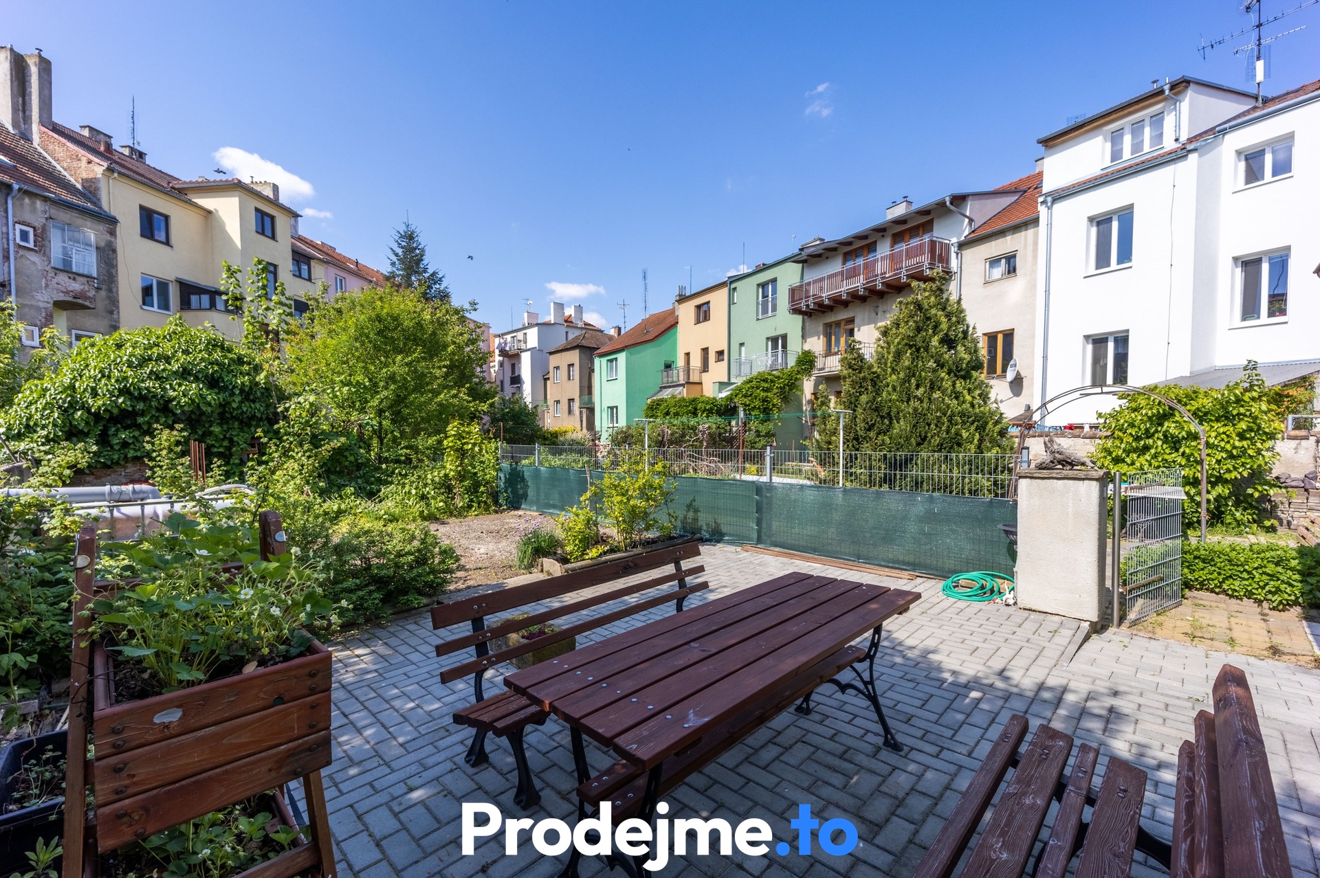 Velkým bonusem je také možnost příjemného posezení na udržované zahradě ve vnitrobloku. Má výměru 81 m2 a je rozdělená na 2 části. Přední se zámkovou dlažbou s venkovním posezením a zadní se záhonky pro pěstování rostlin.