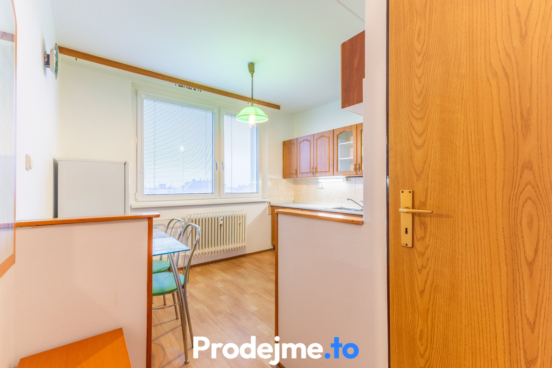 toaletou. V bytě se nachází kuchyňská linka s plynovým sporákem, lednicí, jídelním koutem a