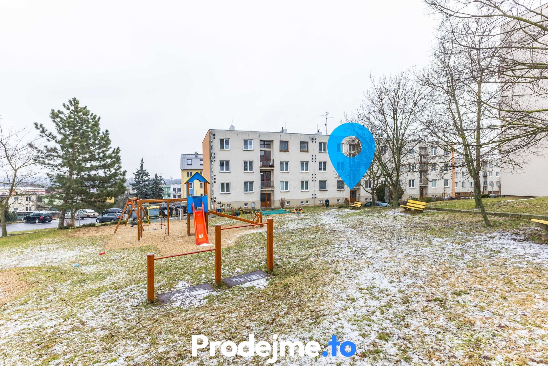 Byt je situován v přízemí domu z pohledu terénu, přičemž při vstupu do bytového domu se k bytu schází o několik schodů níže. Dům je postaven ve svahu a tak dostatečná prosvětlenost je zajištěna.